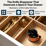 Designed to fit neatly in any kitchen drawer, AnySharp sharpeners are small but powerful. Made with tungsten carbide sharpening tools, they’re built for long-lasting performance.