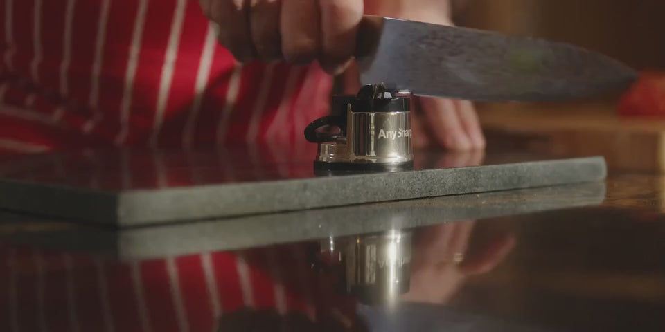 AnySharp sharpeners feature a PowerGrip suction base, securing them safely to any smooth surface. This hands-free design makes sharpening safer, easier, and more stable for any kitchen.
