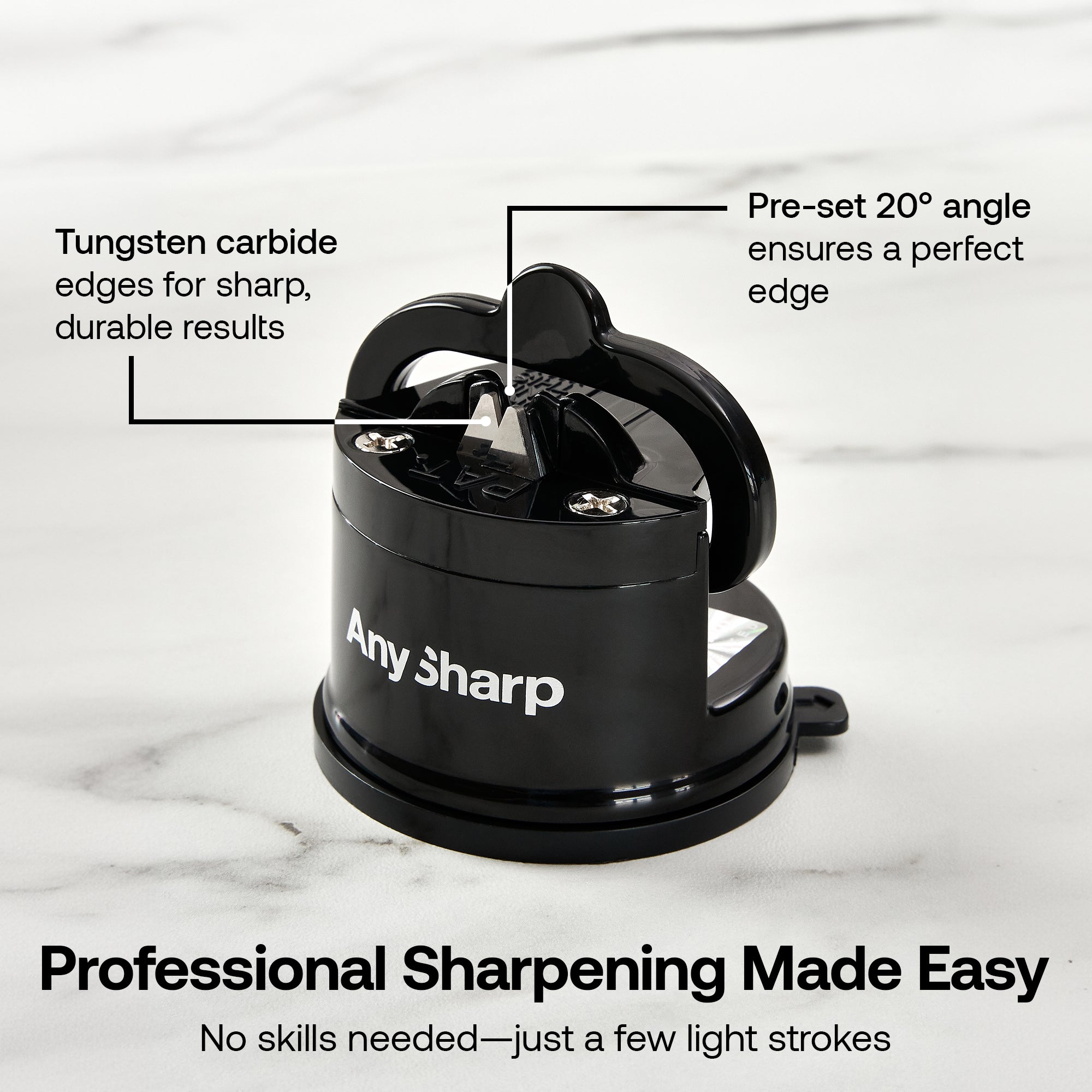 The PowerGrip suction base attaches securely to any smooth surface, so you can sharpen your knives safely, hands-free. Designed with ease in mind, it takes only light pressure to get your blades razor-sharp.