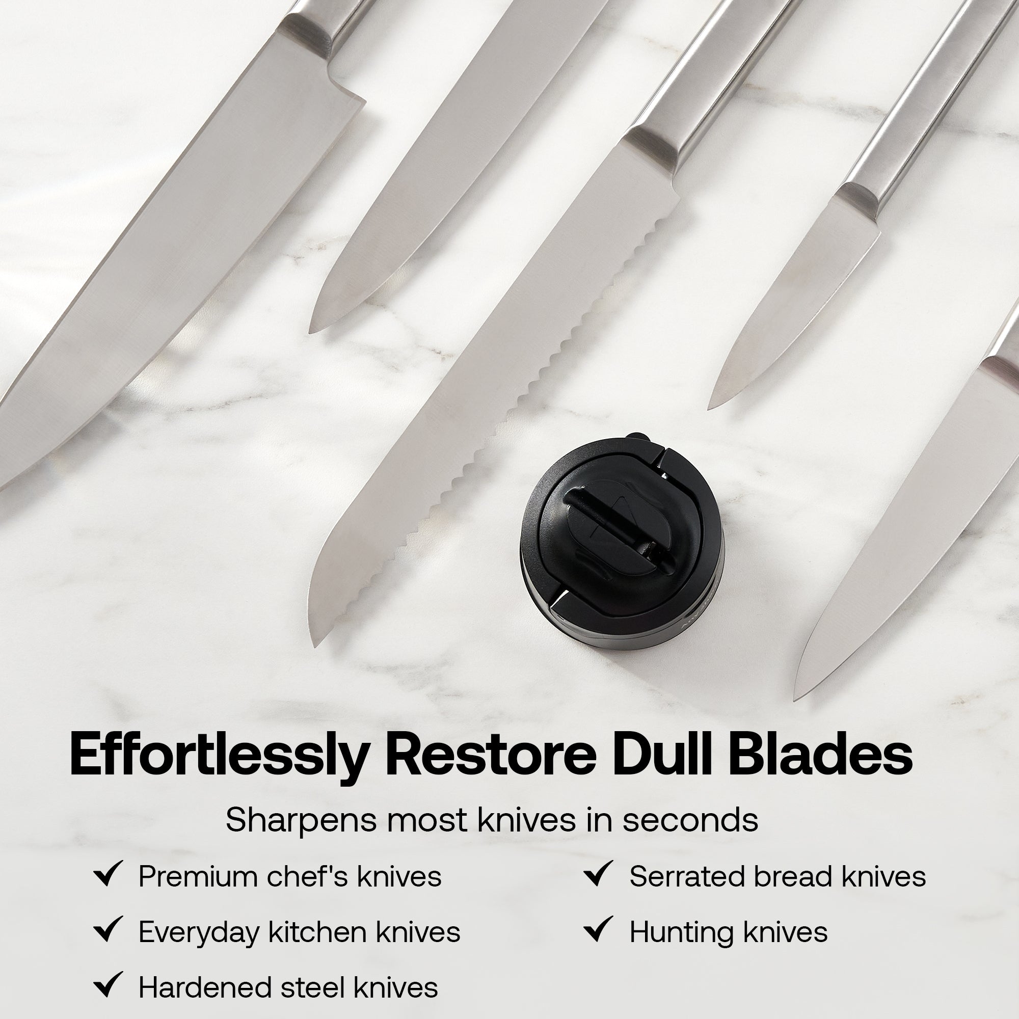 • Razor-Sharp Results in Seconds: Revive your dull knives with just a few swipes—customers rave about the sharp, effortless results. Ideal for daily kitchen use, utility blades, and even serrated edges.